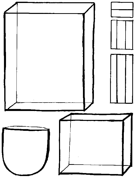 Leikkaa irti kaappi, laatikko ja rasia. Leikkaa irti myös etikettejä.