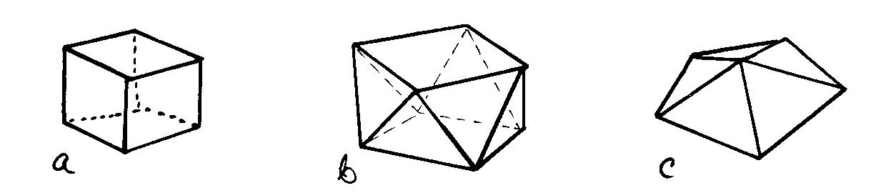 Tämä on klassinen Eulerin monitahokaslause. Itse asiassa kuperuus ei ole tässä välttämätön ehto, sillä väite pätee myös esimerkiksi kuvissa d ja f oleville ''lommoisille'' tahokkaille. Etsimmekin toisentyyppisen luonnehdinnan, jonka avulla tulos on myös helpompi todistaa.