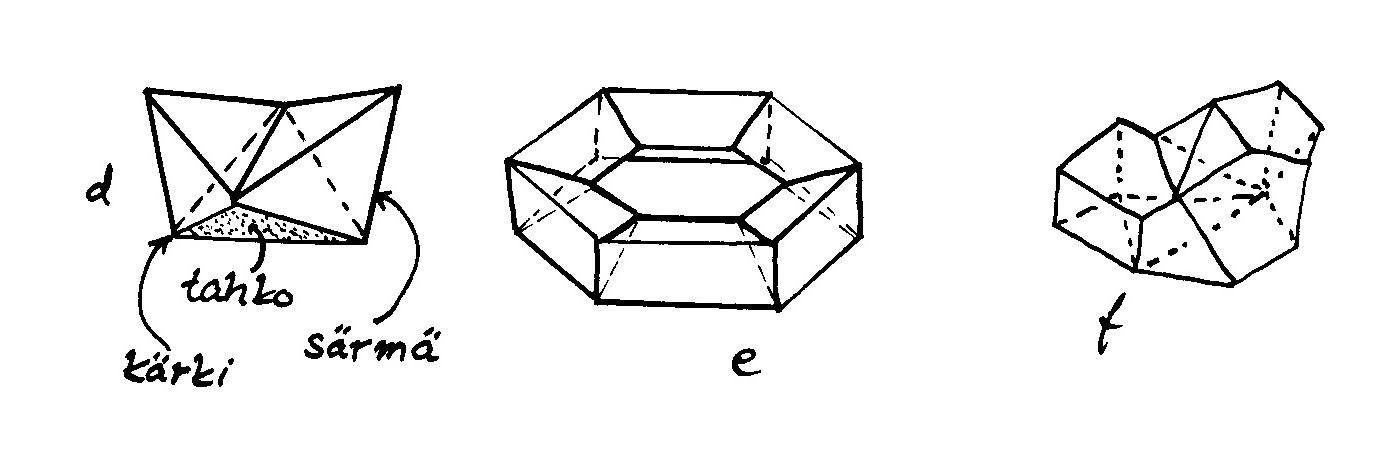 särmiä ja saman verran tahkoja. Kaksi vierekkäistä särmää ovat jonkin