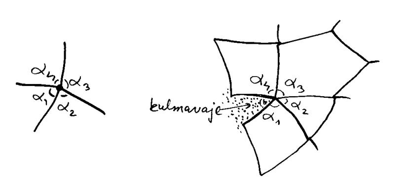kärkipisteen luonteesta. Mikäli kulmien summa sattuu olemaan tasan