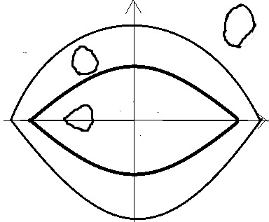 Ajatellaan, että taso on tehty kumista, jota voidaan venyttää vapaasti. Tutkitaan kuvaa 3. Venytetään vasemmanpuoleisessa kuvassa näkyvän ympyrän ylä- ja alapuolta niin, että niistä tulee oikeanpuoleisen kuvan amerikkalaisen jalkapallon ylä- ja alakaari. Koska tasomme on kumia, ympyrän sisään jäävä alue kutistuu samalla niin, että se täyttää täsmälleen amerikkalaisen jalkapallon sisään jäävän alueen, ja ympyrän ulkopuolelle jäävä alue venyy niin, että se täyttää amerikkalaisen jalkapallon ulkopuolelle jäävän alueen.
