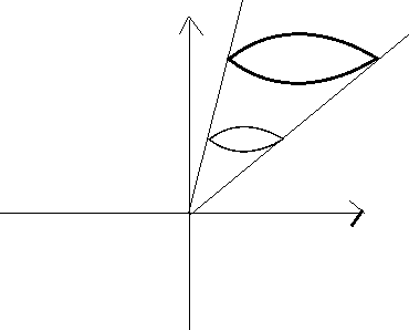 Oletetaan, että \(x \in A\). Koska \(A\) oli rehellinen fysikaalinen kappale, sen reuna tulee jossain vaiheessa kuljettaessa pisteestä \(x\) vektorin \(x\) osoittamaan suuntaan, ja on siis olemassa \(k' \ge 1\), jolle \(k'x\) on kappaleen \(A\) reunalla. Mutta nyt \(k\):n yksikäsitteisyyden nojalla \(k=k' \ge 1\).