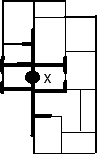 Tai ajatellaan perusjoukoksi jonkun kaupungin katuverkko, jossa jokaista katua kuvataan janalla. Etäisyysfunktio tässä joukossa voidaan määritellä niin, että kullekin kahdelle kaduilla olevalle pisteelle \(x\) ja \(y\) etäisyys \(d(x,y)\) on lyhyin etäisyys katuverkkoa pitkin mitattuna. (Katso kuva 1.)