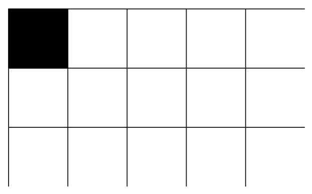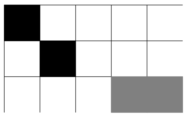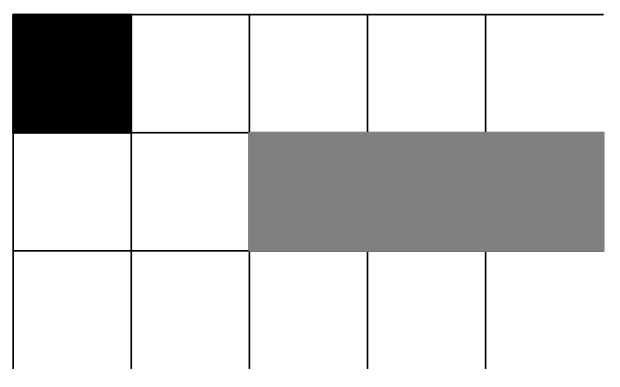 Etsitään ylin hirviö. Koska hirviöitä on vähemmän kuin rivejä, on mahdollista, että ylimmällä rivillä ei ole hirviötä, eikä välttämättä edes toiseksi ylimmällä. Oletetaan yksinkertaisuuden vuoksi, että hirviö löytyi ylimmältä riviltä. Vaihtoehtoja on nyt kaksi: hirviö ei ole laidassa tai hirviö on laidassa, eli jommassa kummassa reunimmaisessa sarakkeessa. Vaihtoehtoiset tilanteet näyttävät siis tältä: