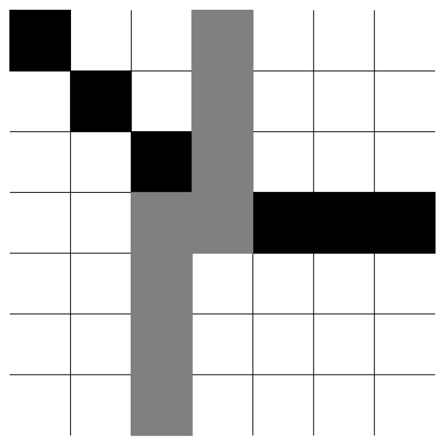 Turbo-Etana kulkee toiselta riviltä kaikki muut ruudut läpi paitsi reunimmaisen (hirviön alla olevan tai sen vieressä olevan). Turbo-Etana siis kulkee seuraavat ruudut läpi: