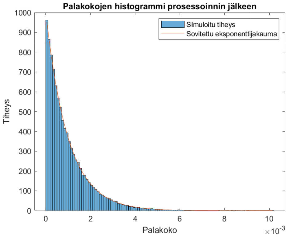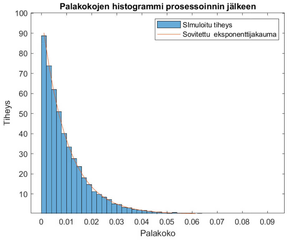 Havainnollistamme, että raastetun ruoan palakoko noudattaa eksponenttijakaumaa.